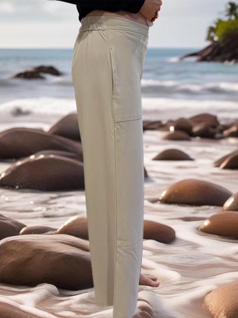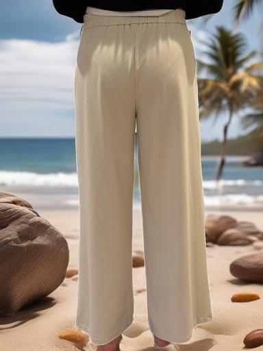 This elegant pant has an elastic waist, two full front pockets & is fashionably wide at the bottom and can be worn for any occasion.